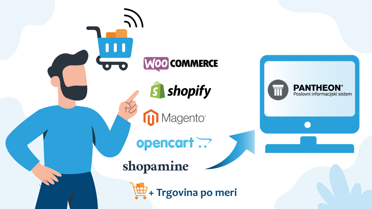 PanScan omogoča tudi povezavo s spletno trgovino (npr. WooCommerce, Shopify, Shopamine …), zato se naročila samodejno prenesejo v PANTHEON in so takoj pripravljena za komisioniranje.